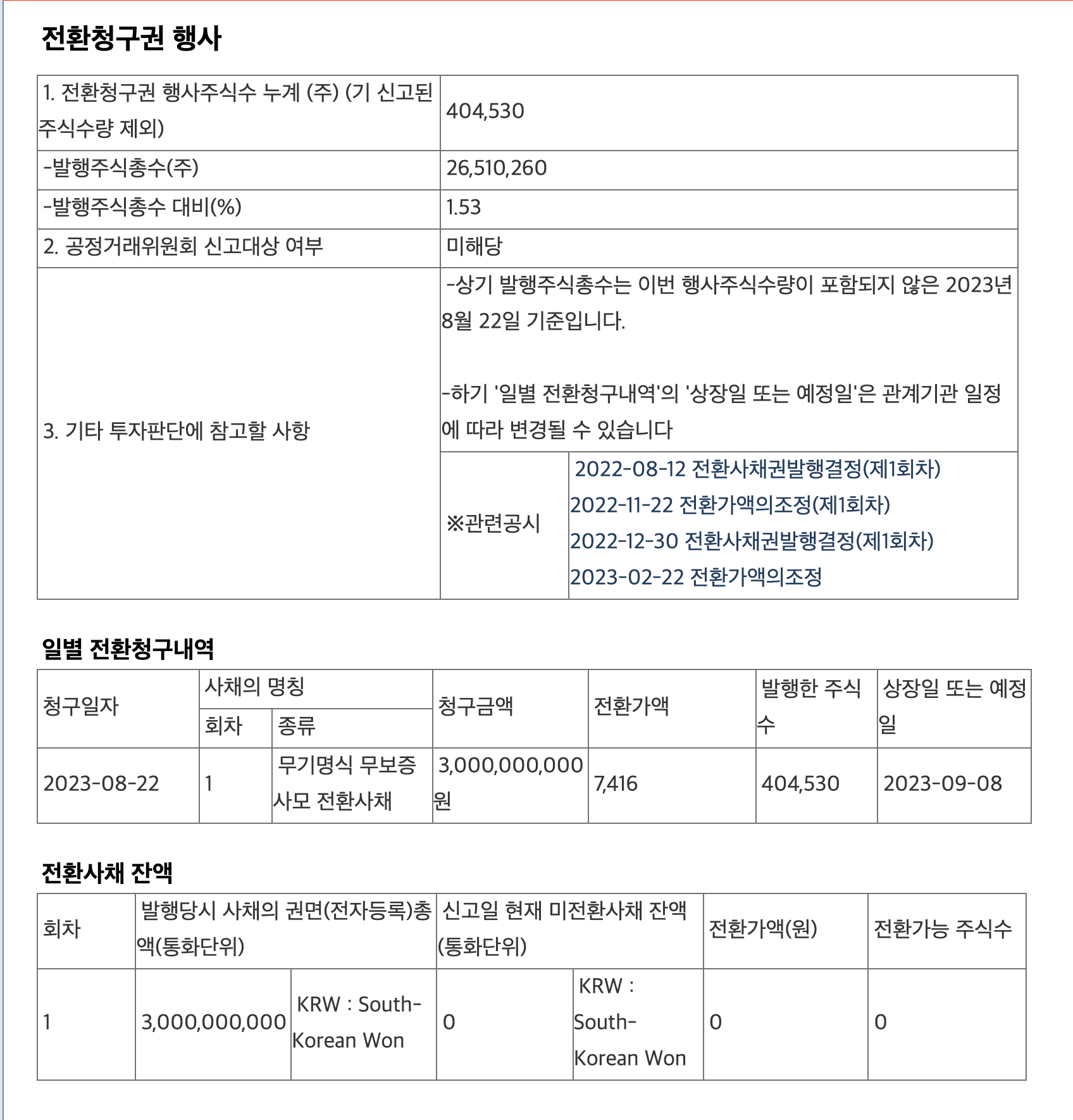 차트를 보니 전환청구를 행사한 주식이 발행되는 시점 최고가가 26,000원 정도로