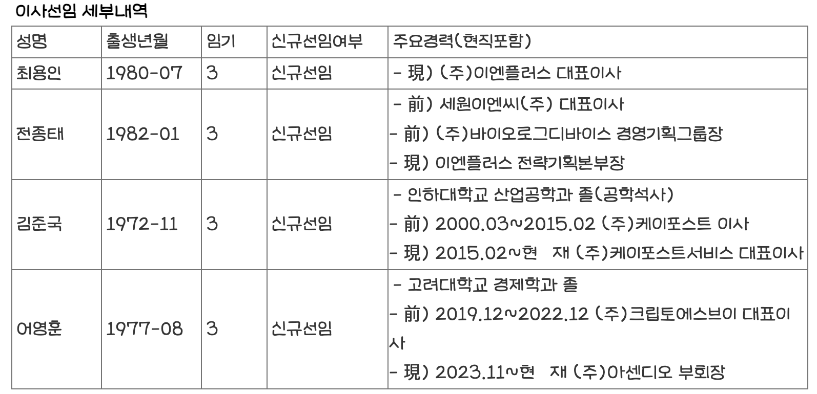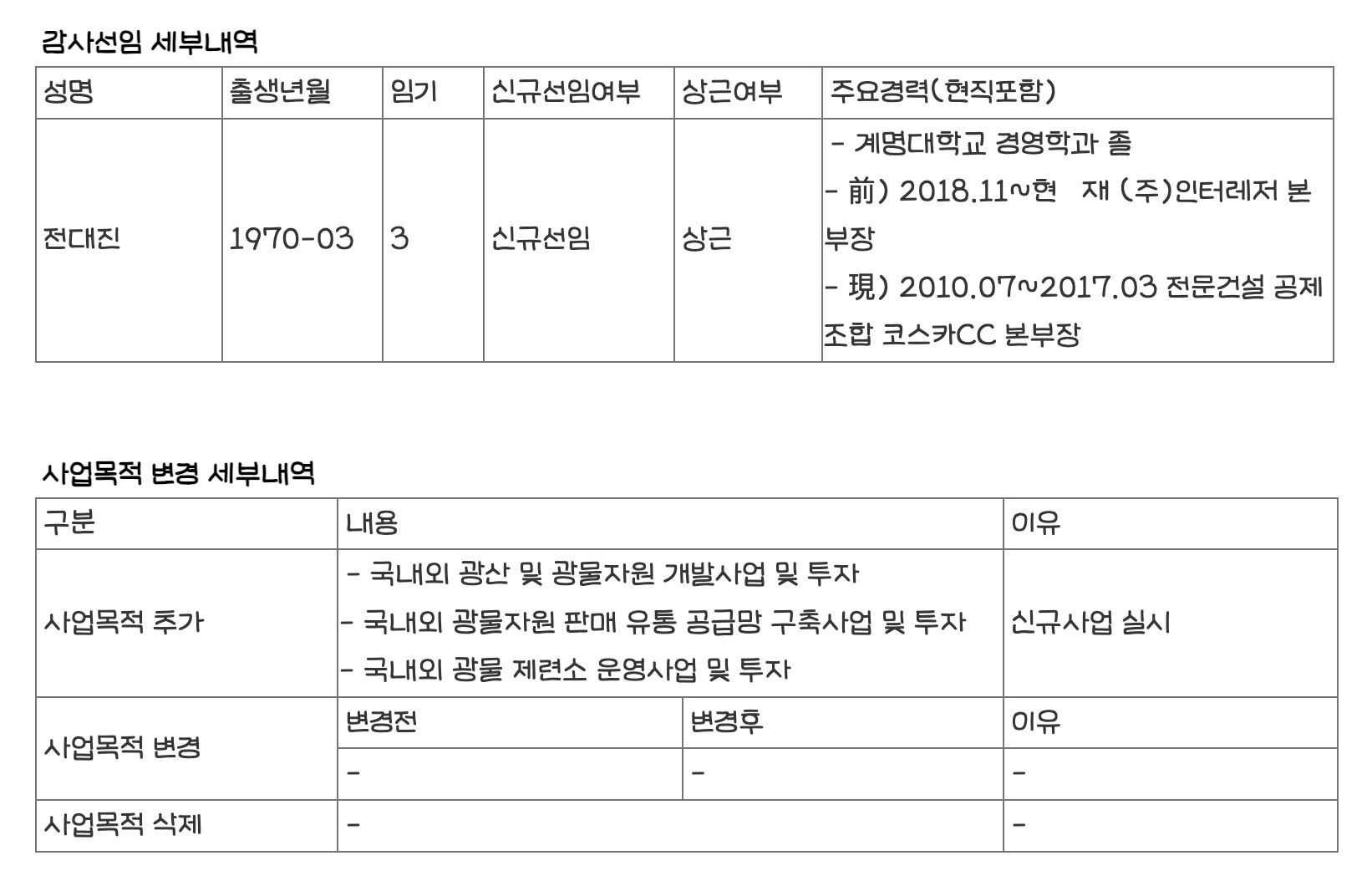 신규이사 선임, 신규사업 목적 추가 등의 흐름이 같은 것 같아