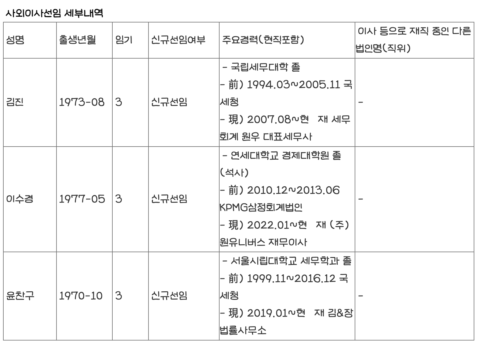 신규사업을 추가하고, 새로운 이사들이 많이 들어오는데 눈에 띄는건 세무회계 대표세무사와