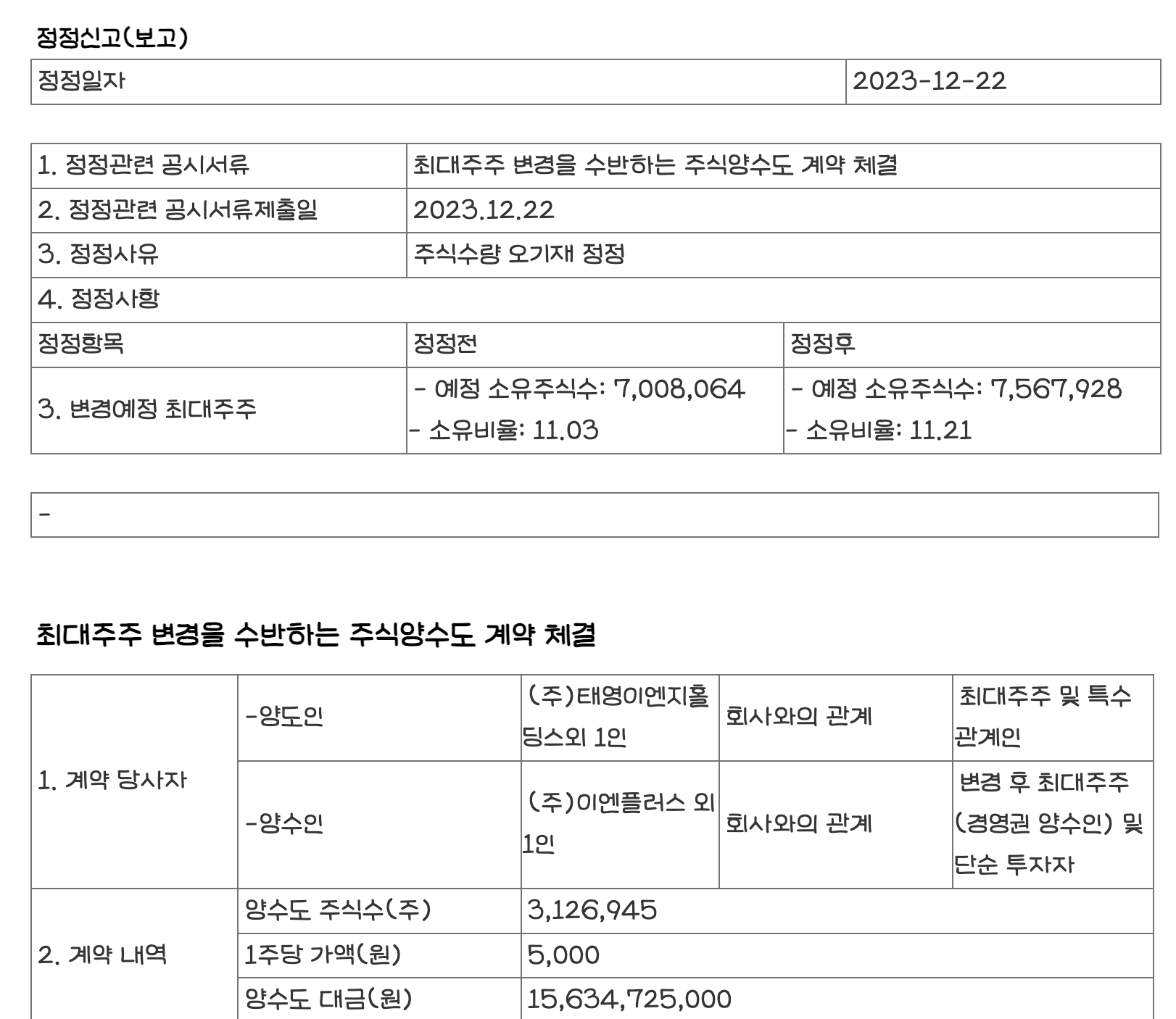 2023.12.22 최대주주 변경 수반 주식양수도 계약