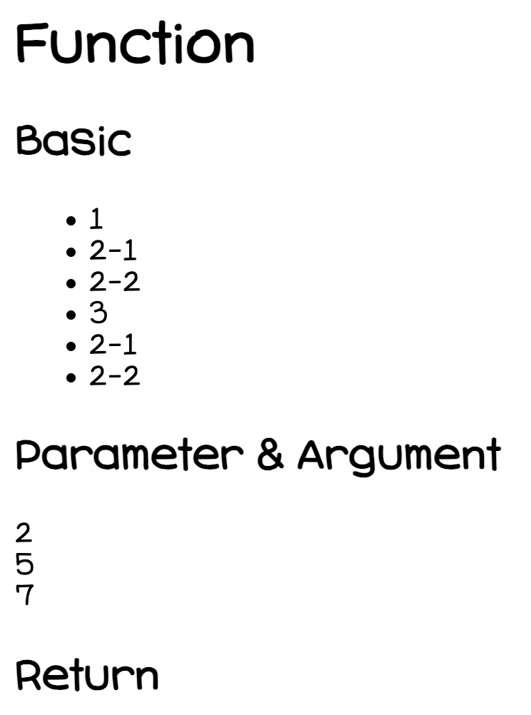 입력(Parameter) : 매개변수 - 인자값을 받아서 함수 안으로 매개해 주는 변수