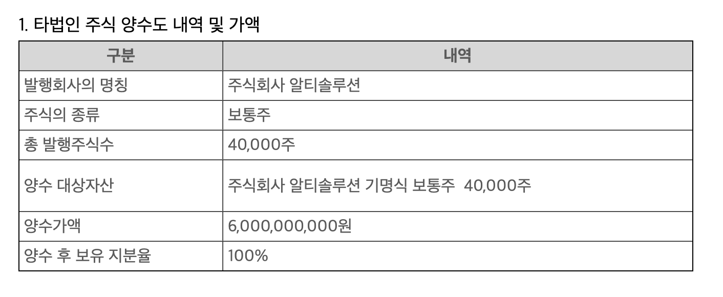 아마 이 일의 수주를 받으려 알티솔루션을 인수한것으로 생각됩니다.