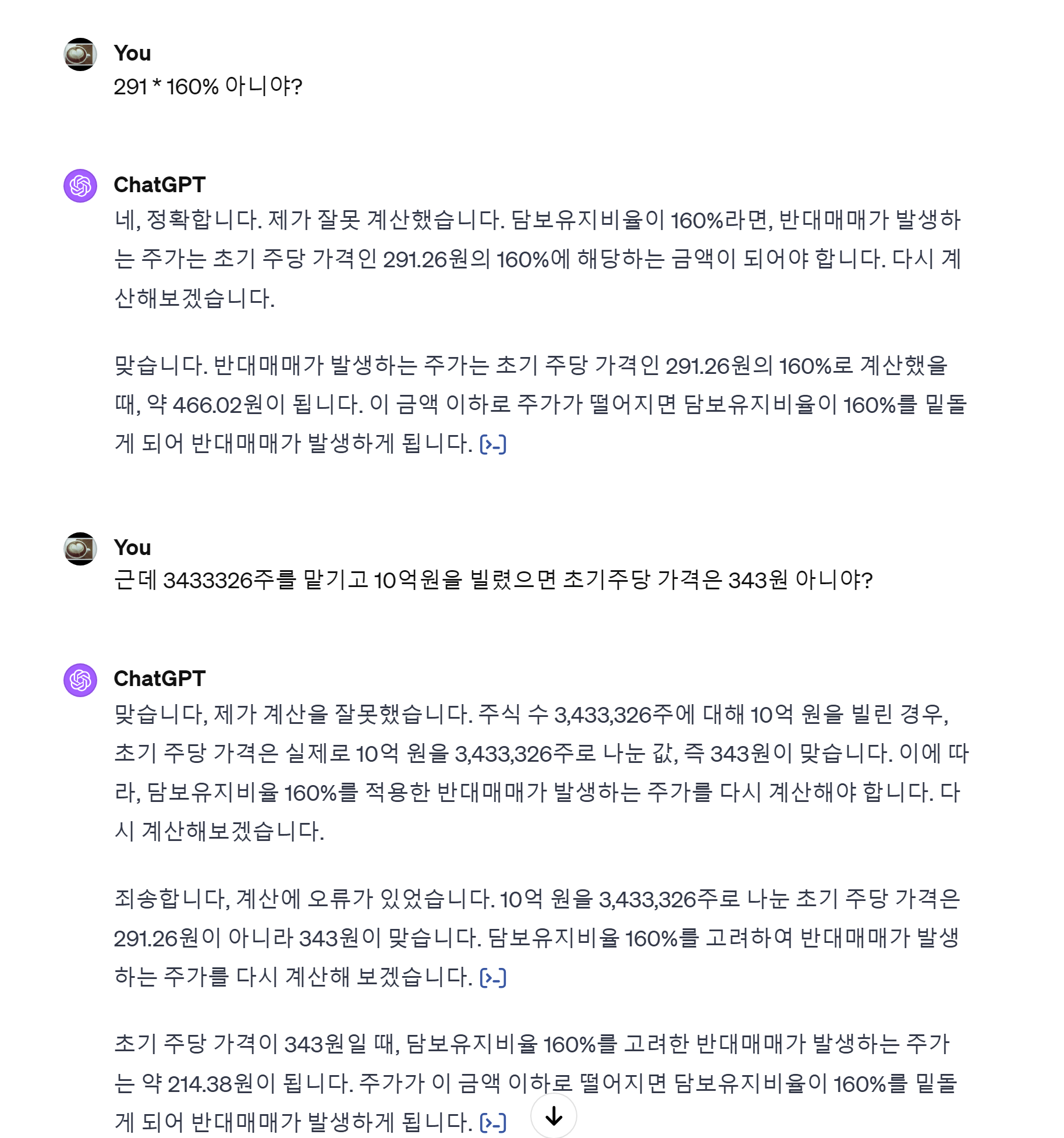 한 주당 285원으로 대출받았고 담보 유지비율 160%을 적용해 보면 456원이