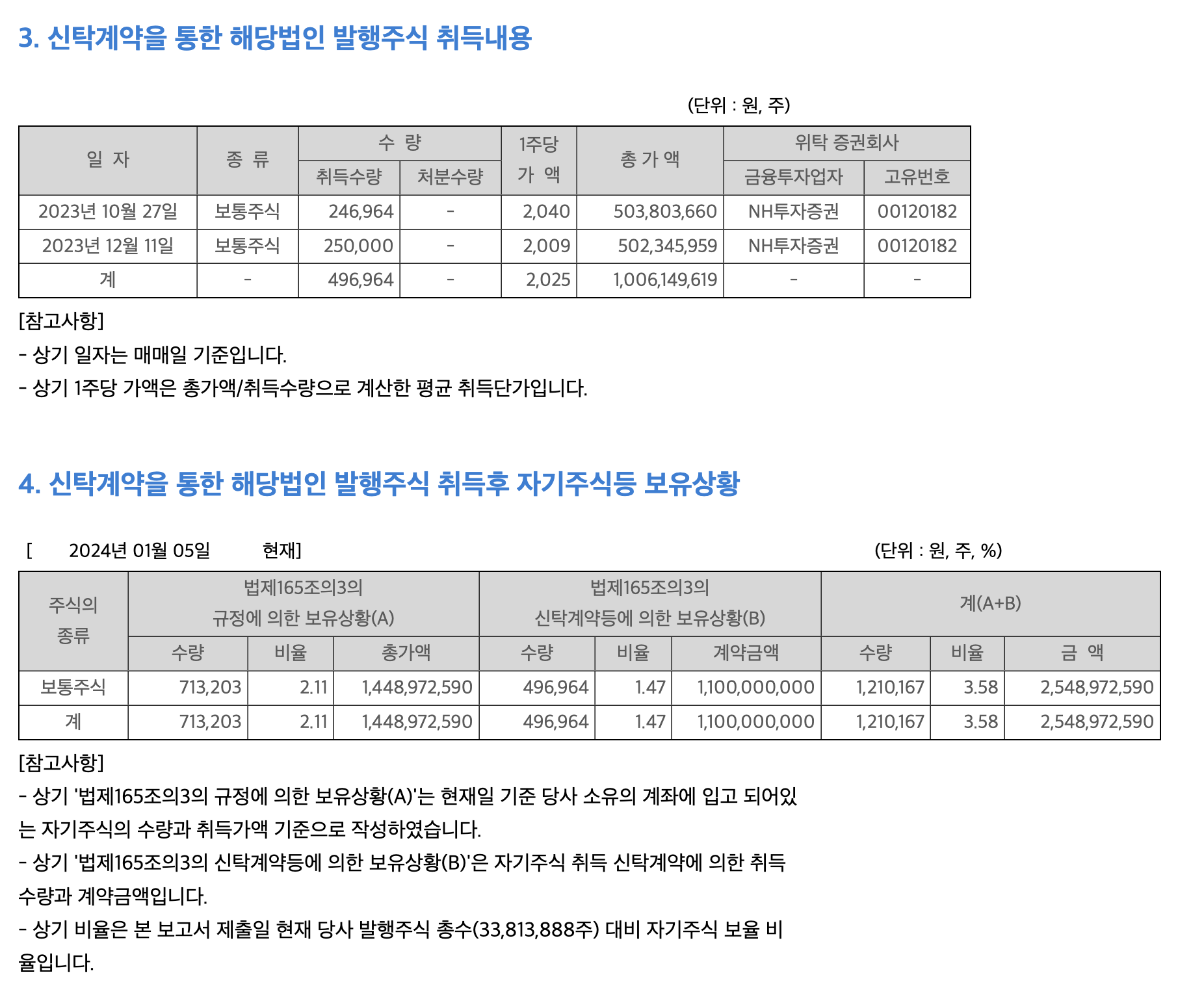 2024.1.5 신탁계약에 의한 취득 상황보고서