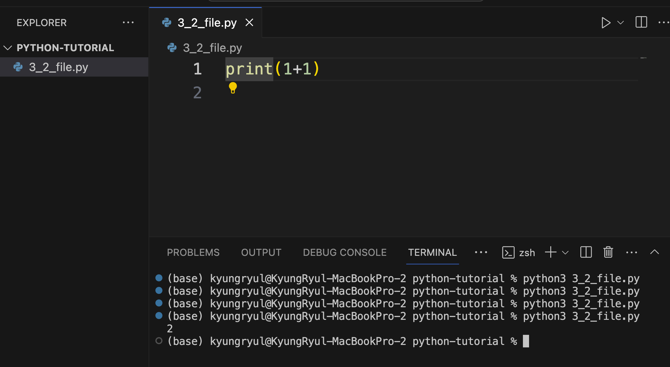 터미널창에서 python3 명령어 뒤에 파일명을 입력해준다!