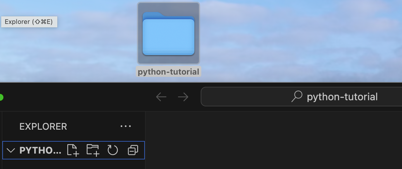 python-tutorial 이란 폴더를 만들고 비주얼스튜디오 코드로 드래그 하면 폴더가 지정이 된다.