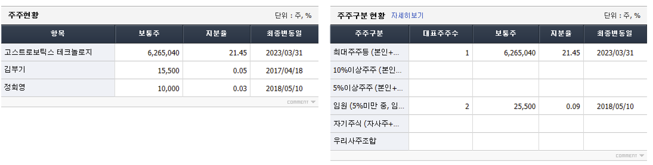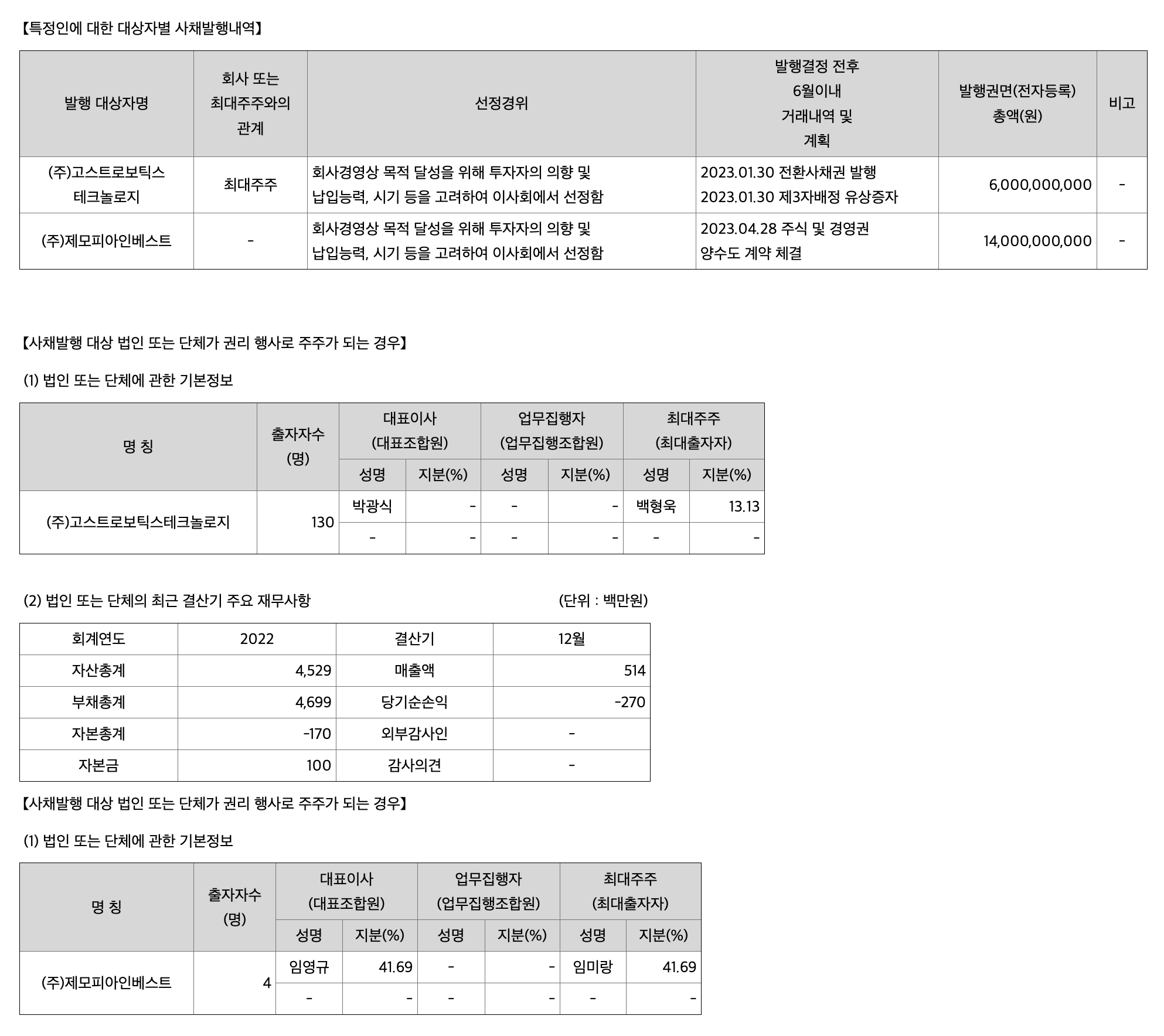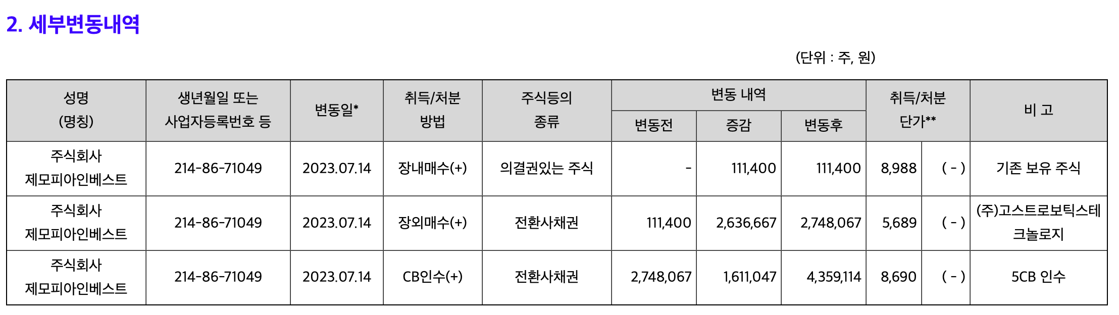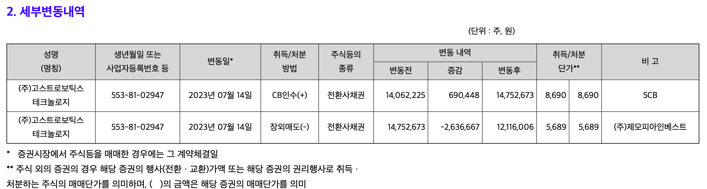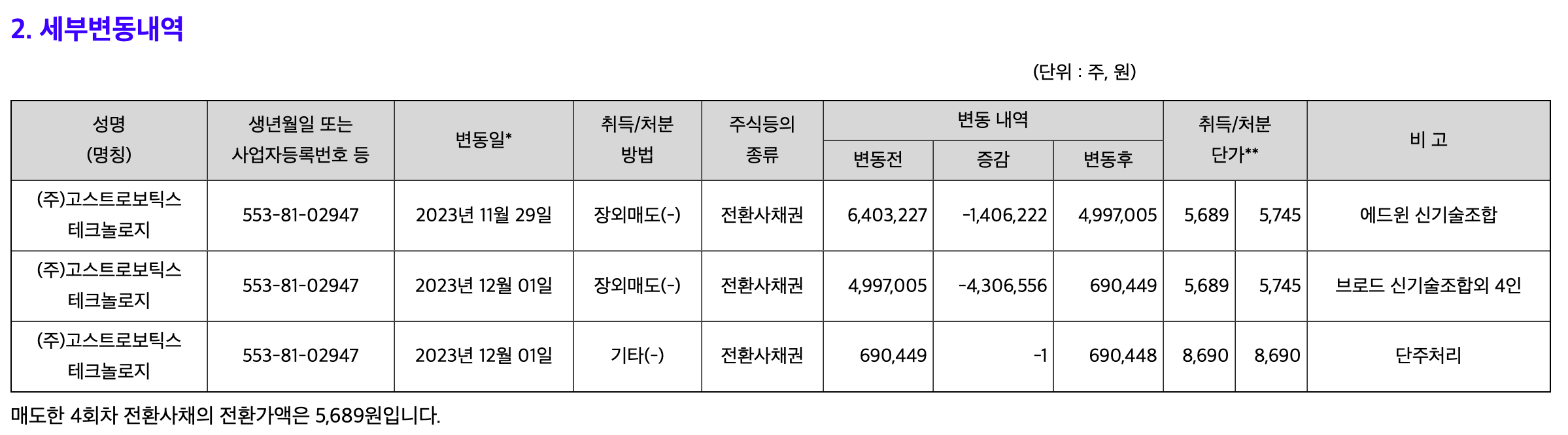 최대주주인 고스트로보틱스의 전환사채권을 조합에 매도하여 지분이 35.57% -> 23.26% 로 줄어듦.
