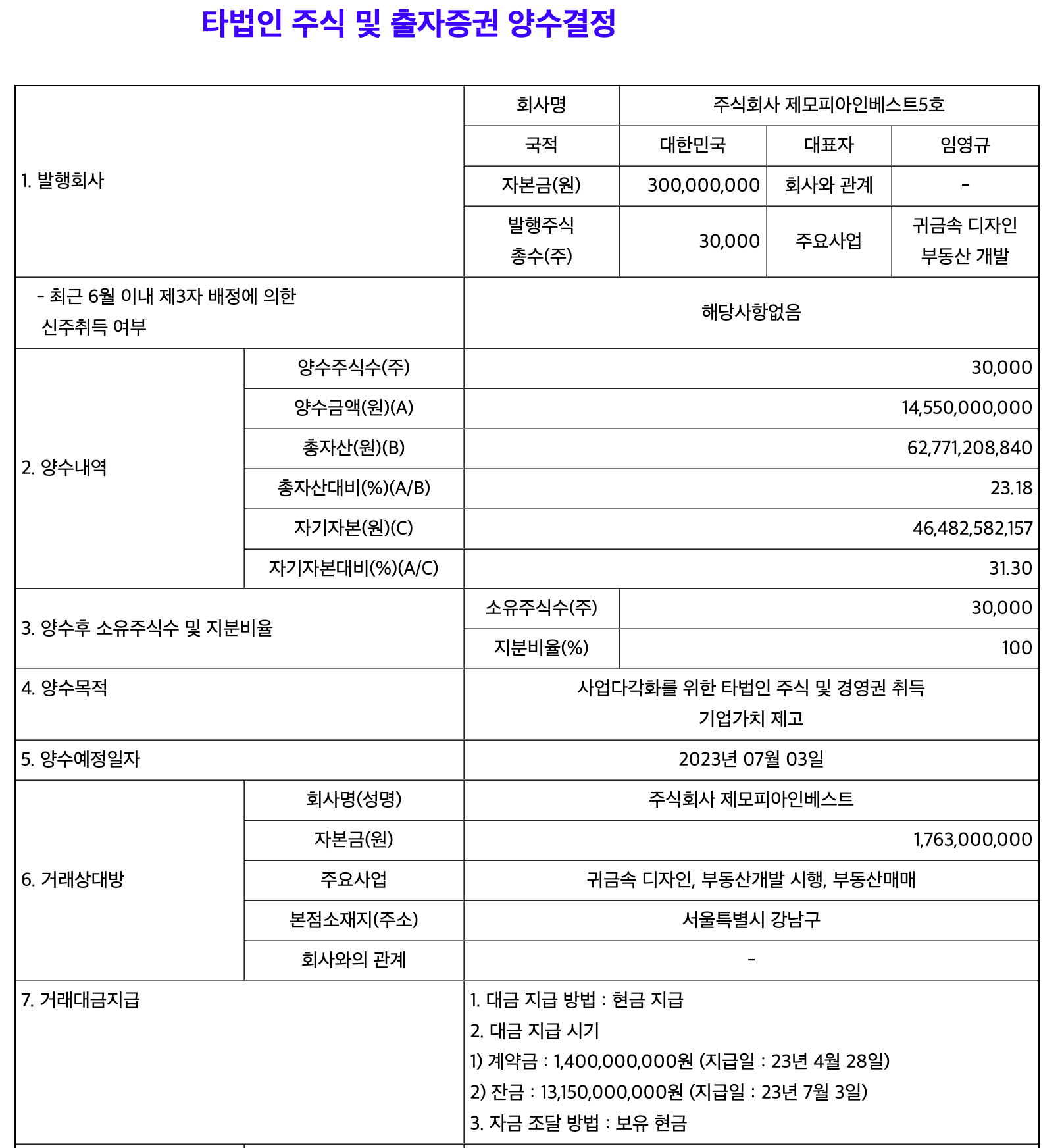 - 적자인 기업을 인수한 것도 이상한데, 제모피아인베스트에서 같은 날