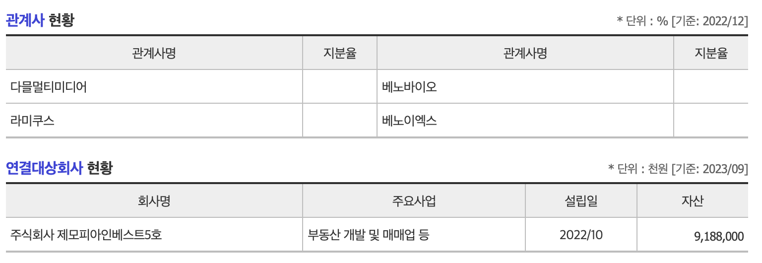이 기업의 연결회사인 제모피아인베스트 때문인지 정확하게는 모르겠습니다.