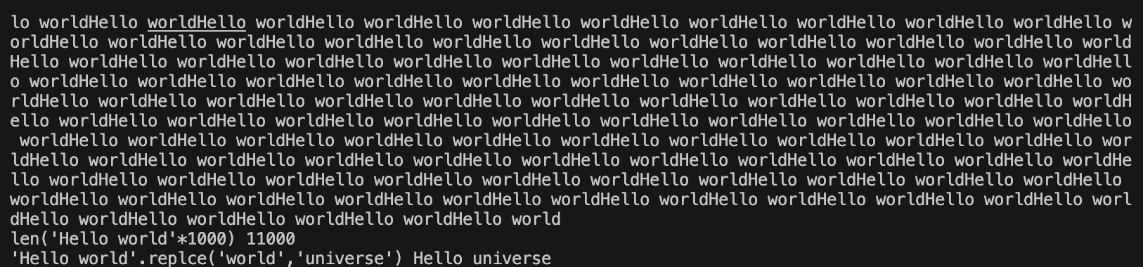 마지막엔 replace 를 이용해 world를 universe로 대치하기.