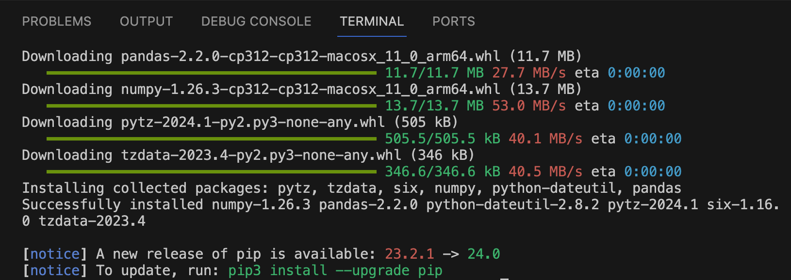 pandas 로 파일을 불러와서 실행해주면, csv 파일안의 데이터를 보기좋은 형태로 보여준다.