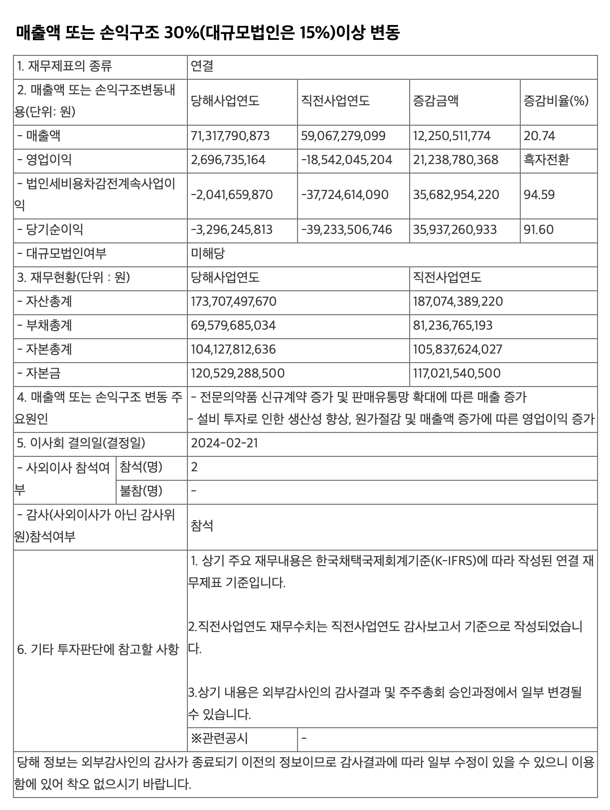 2024.2.21 매출액 또는 손익구조 30% 이상 변동