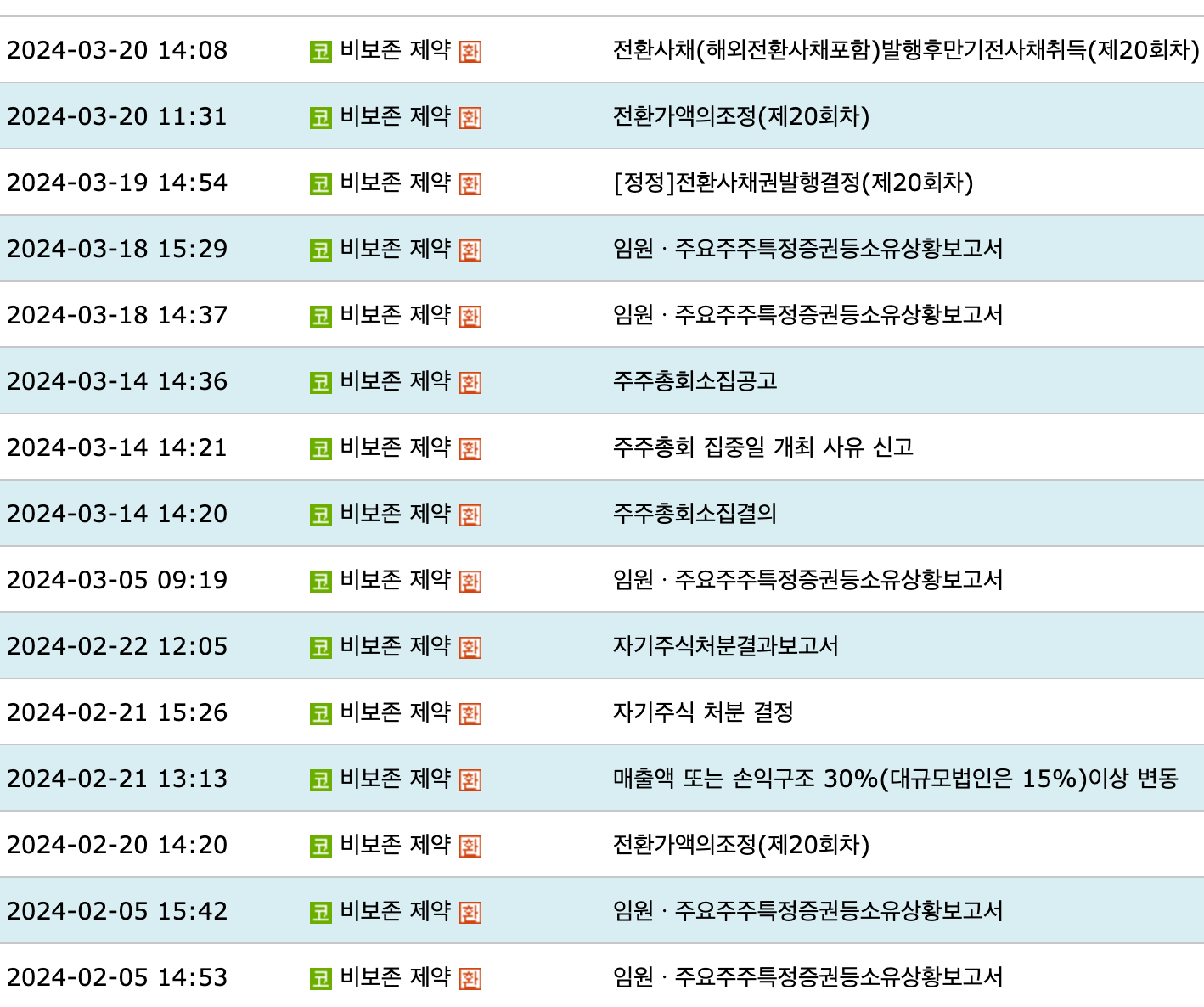 2024.3.20 전환사채 발행 후 만기 전 사채 취득 (20회 차) & 전환가액의 조정