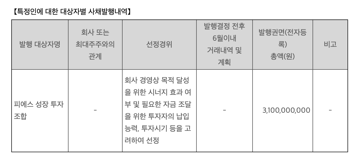 발행자는 피에스 성장 투자조합인데 세부사항은 보이지 않았습니다.