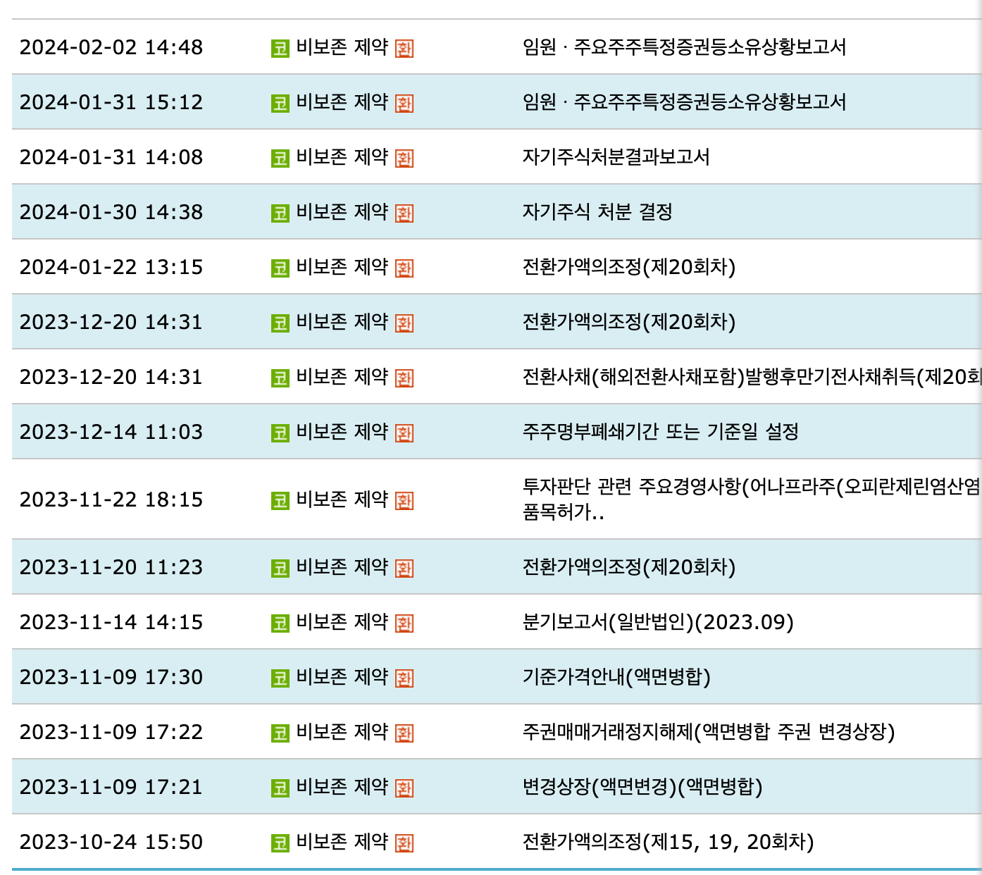 2022.11월에 최초 발행되었던 전환사채는 4번이나 정정공시가 있었고,