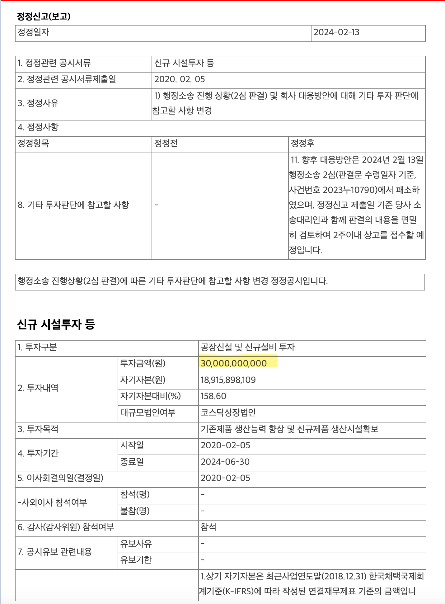 그리고 스마트팩토리 건설과 관련하여 소송도 진행 중.