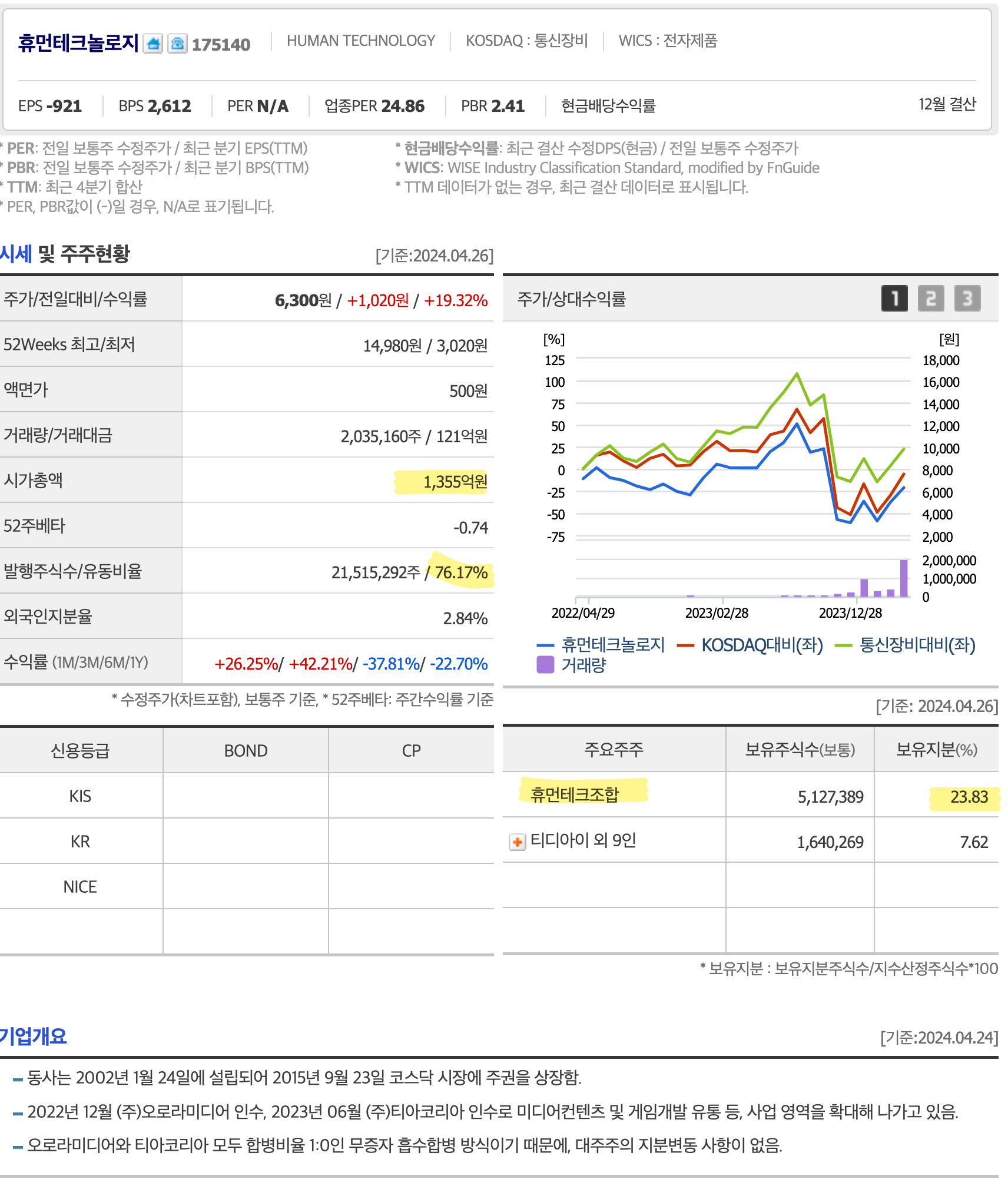 보여주었습니다. 사명을 변경하고 새로운 기사를 내더니 올라가는 모양입니다.