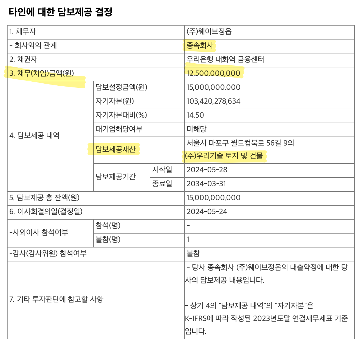 2024.5.24 추가상장 & 타인에 대한 담보제공 결정