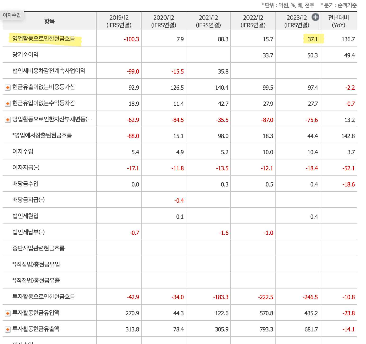 영업이익도 작년 4분기 기준으로 꾸준히 좋아지고 있었지만, 이번 1분기는 다시 적자전환이네요;;