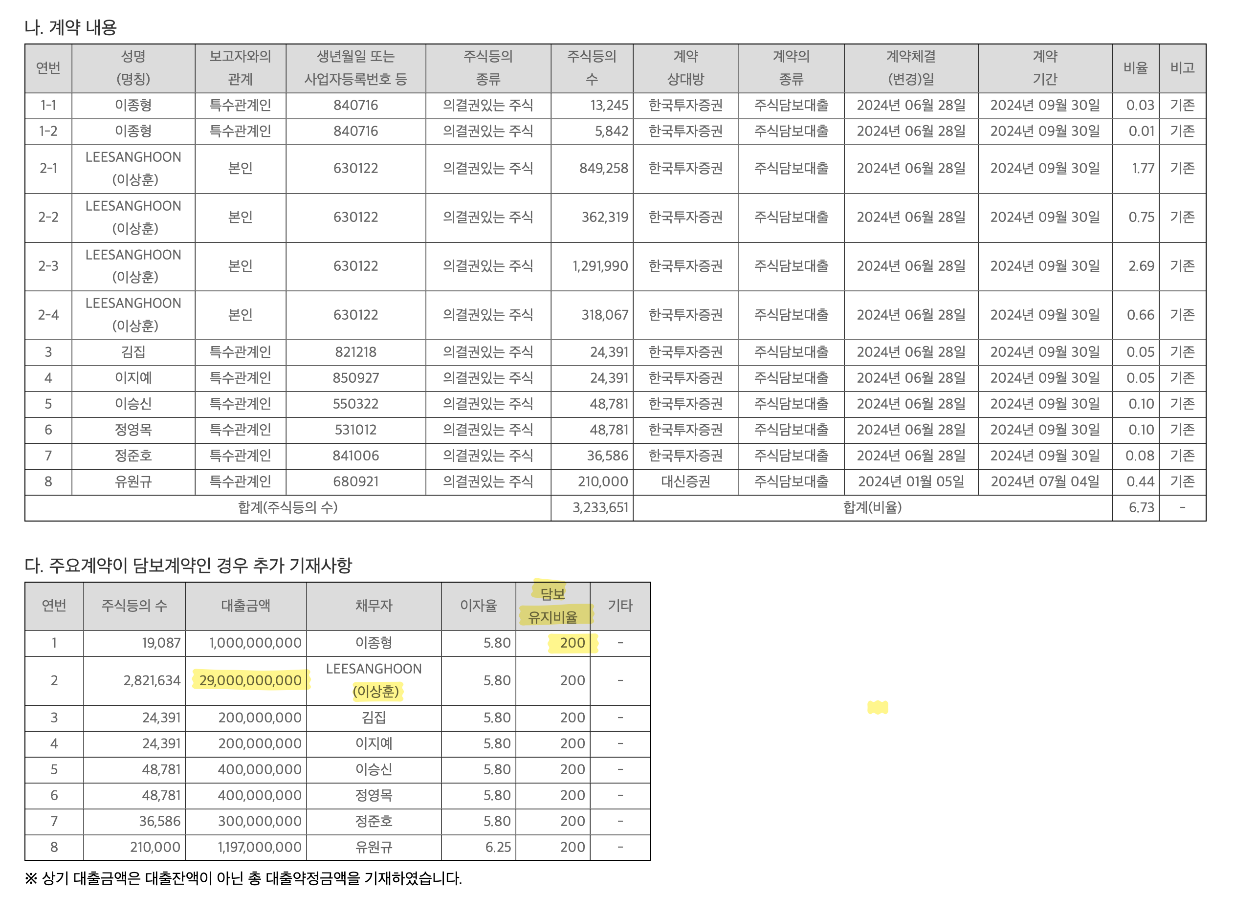 특수관계인들까지 골고루 대출이 많습니다 ^^;