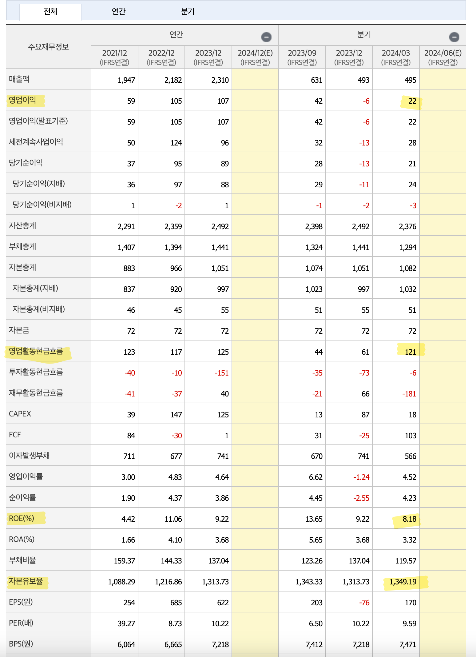 재무는 아주 나쁘진 않지만, 그렇다고 아주 좋은 것도 아닌...