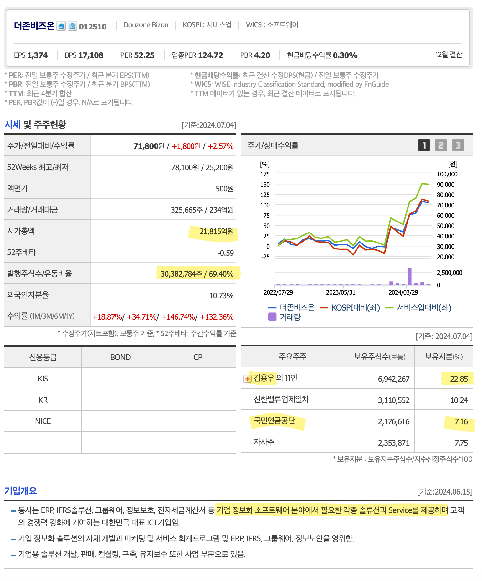 더존비즈온같은 경우는 일단 회사의 실적과 재무가 뒷받침되어 있고,