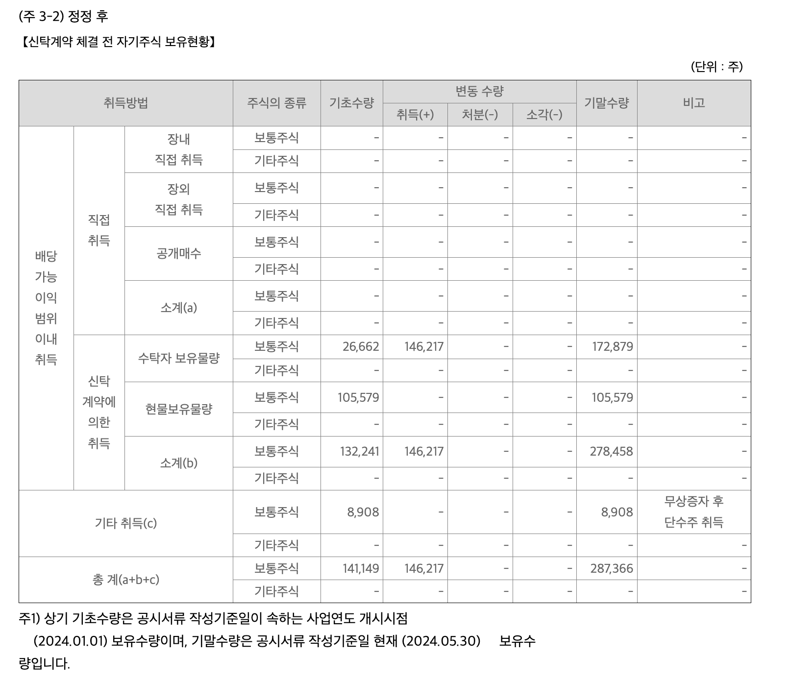 2024.5.30 [정정] 자기주식취득 신탁계약 체결결정