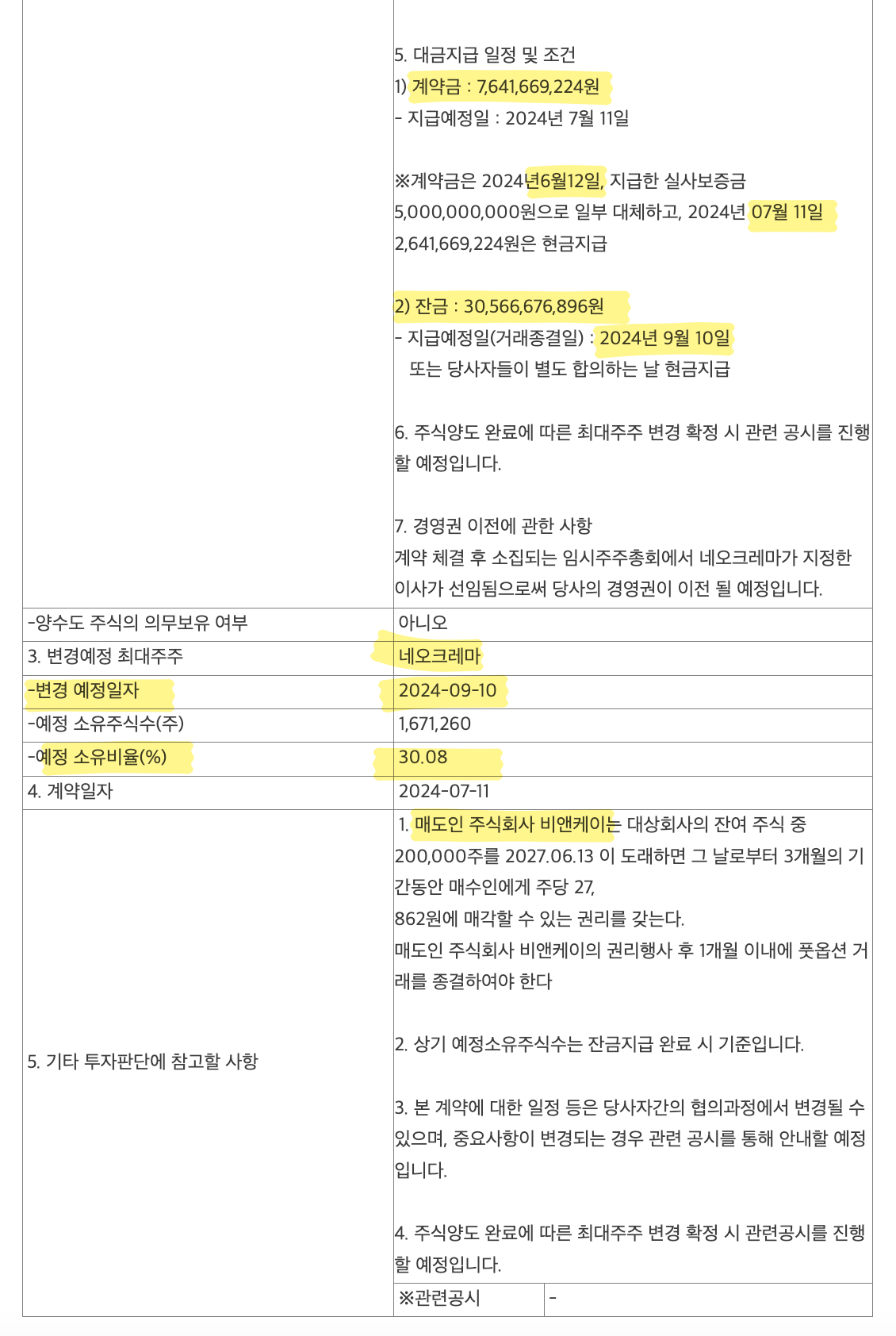 2024.7.12 [정정] 최대주주변경을 수반하는 주식양수도 체결