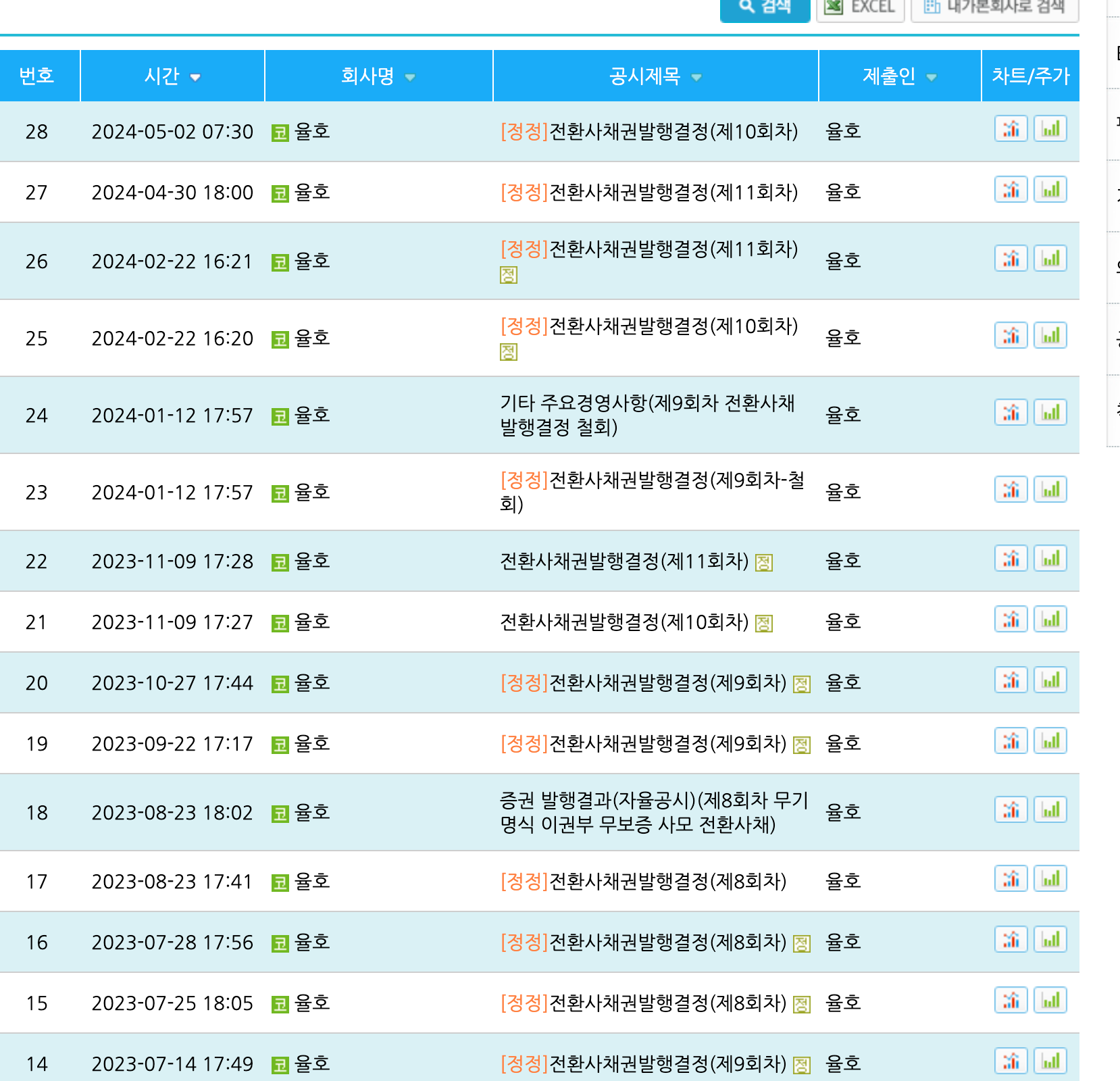 오래전부터 지켜보던 율호의 새로운 공시입니다.