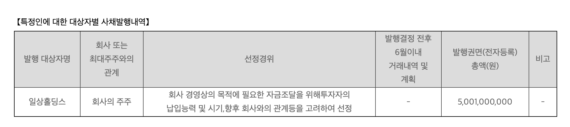 이전 최대주주였던 일상홀딩스가 발행받았던 전환사채인데 표면이자율은 0%, 만기이자율 은 4%이지만 만기가 2026년 3월입니다.