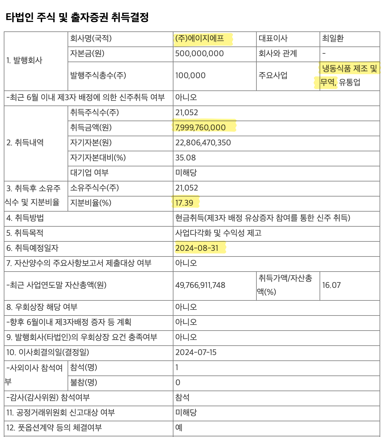 2024.7.15 타법인주식 및 출자증권 취득결정