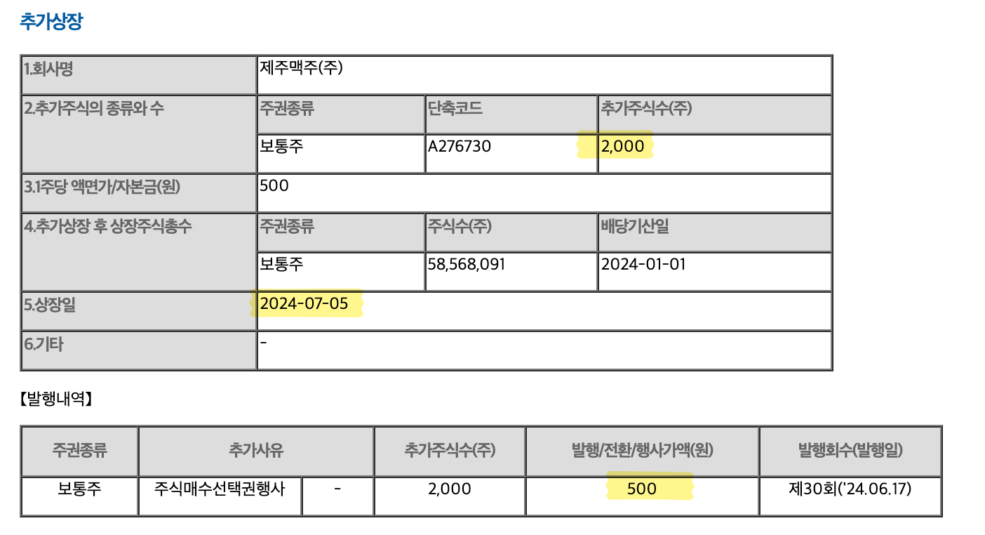 2024.7.2 추가상장(주식매수선택권 행사)