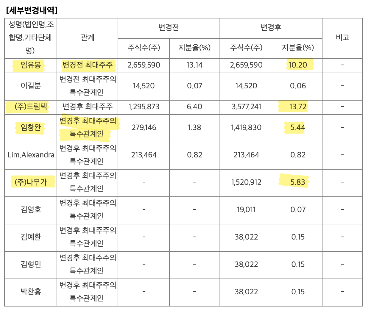 나무가도 살펴보니 드림텍이 최대주주네요...