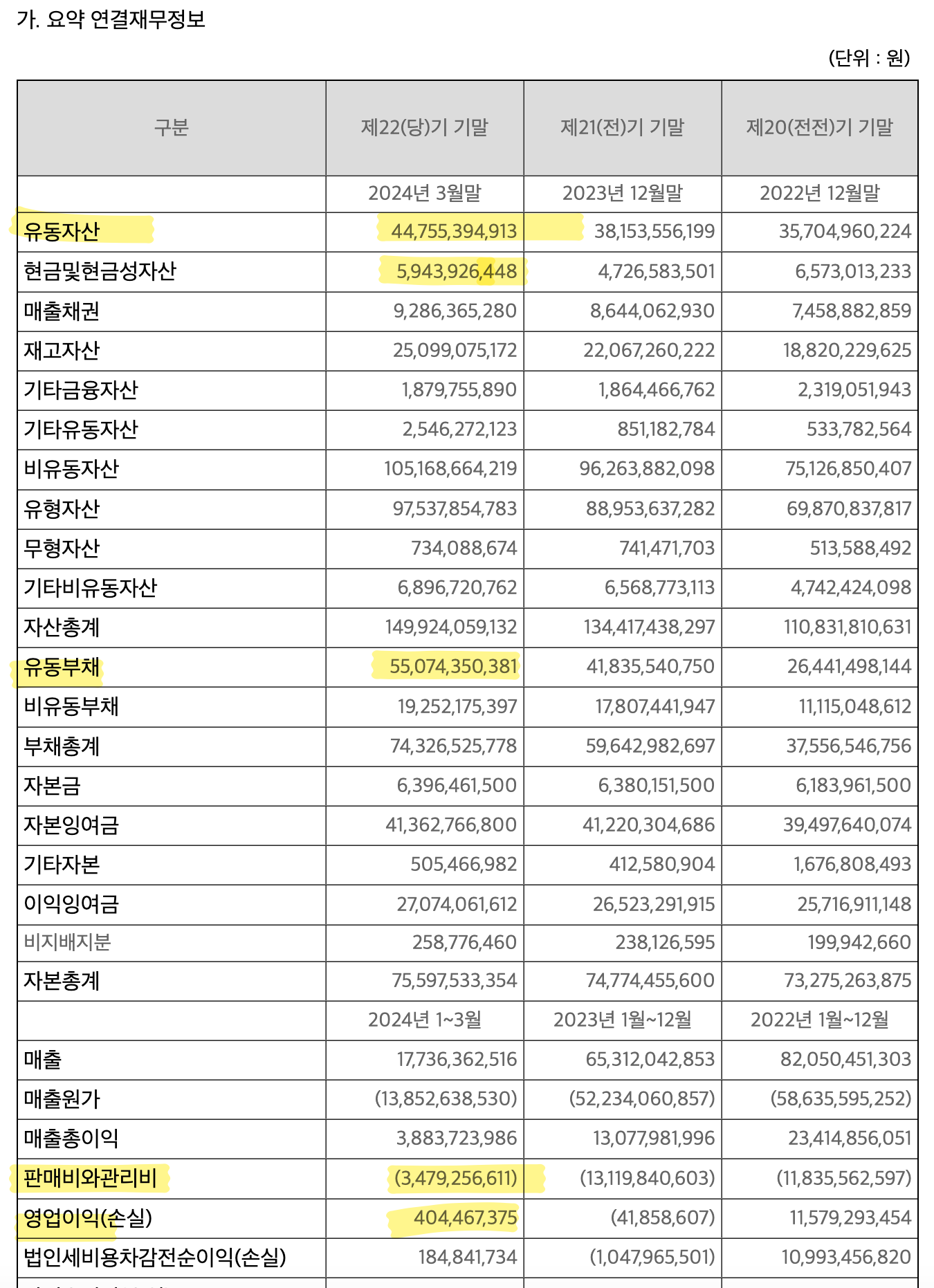판관비가 줄어들긴 했지만 여전히 적자가 크고, 유동부채가 너무 많은 상황입니다.