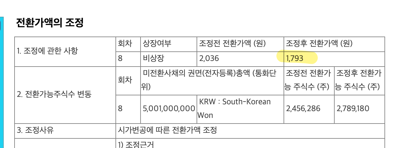 2024.8.23 전환가액의 조정 & 전환사채 발행후 만기전 사채취득(제8회차)